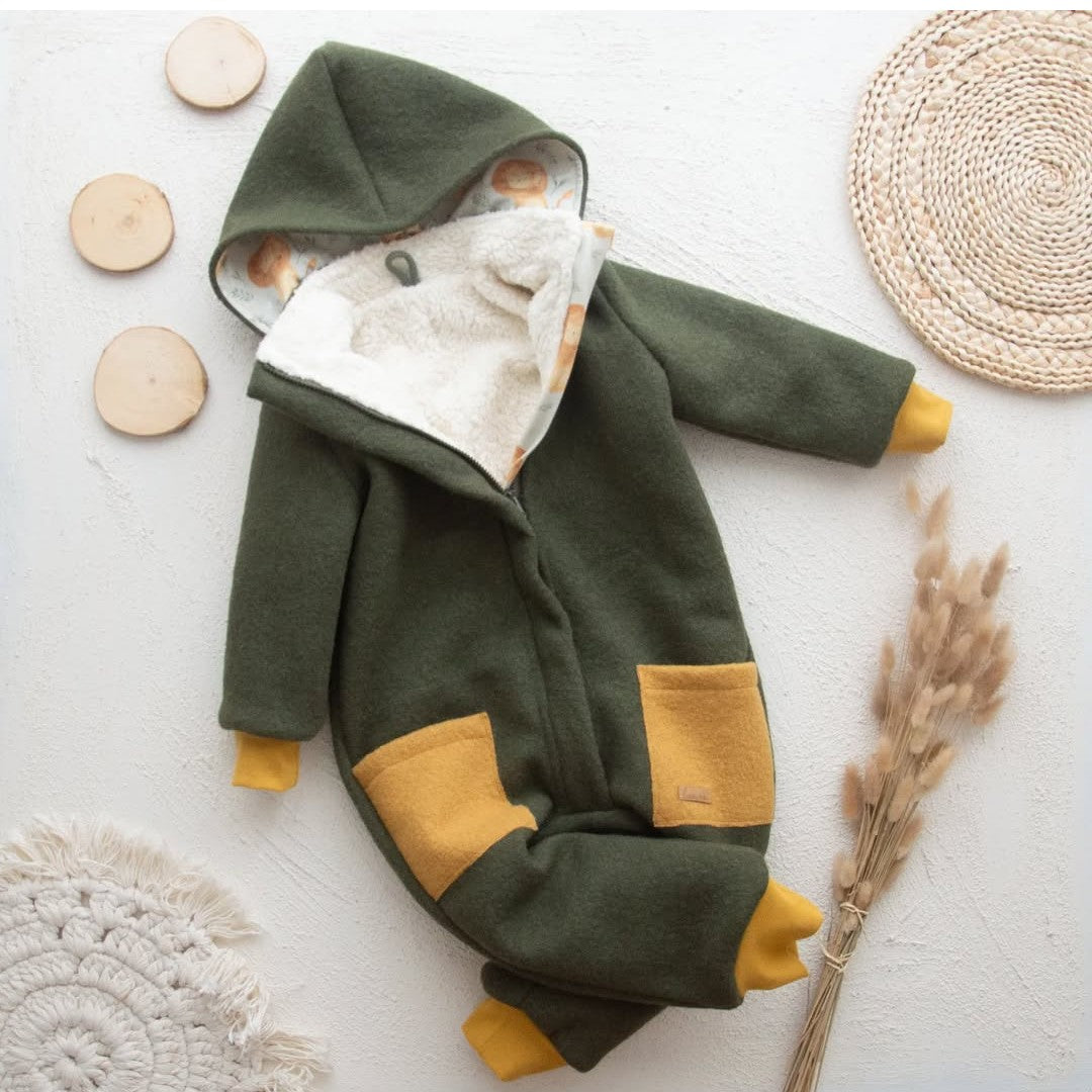Der Walkoverall ist innen komplett mit weichem Baumwoll-Jersey, Ribjersey oder Waffeljersey gefüttert, so haben es eure Kleinen schön kuschelig.